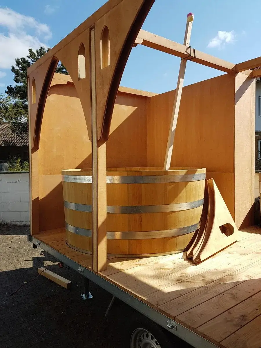 Unsere Zuber bieten Platz für gemütliche Runden — ideal für Freundesgruppen, Lagergruppen oder als entspannte Pause vom Markttrubel.