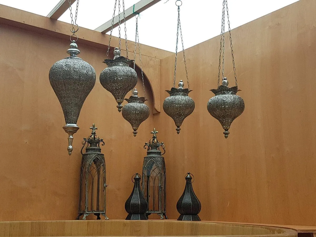 Orientalische Lampen und handgefertigte Deko schaffen eine warme Stimmung — ideal, um die Augen zu schließen und durchzuatmen.